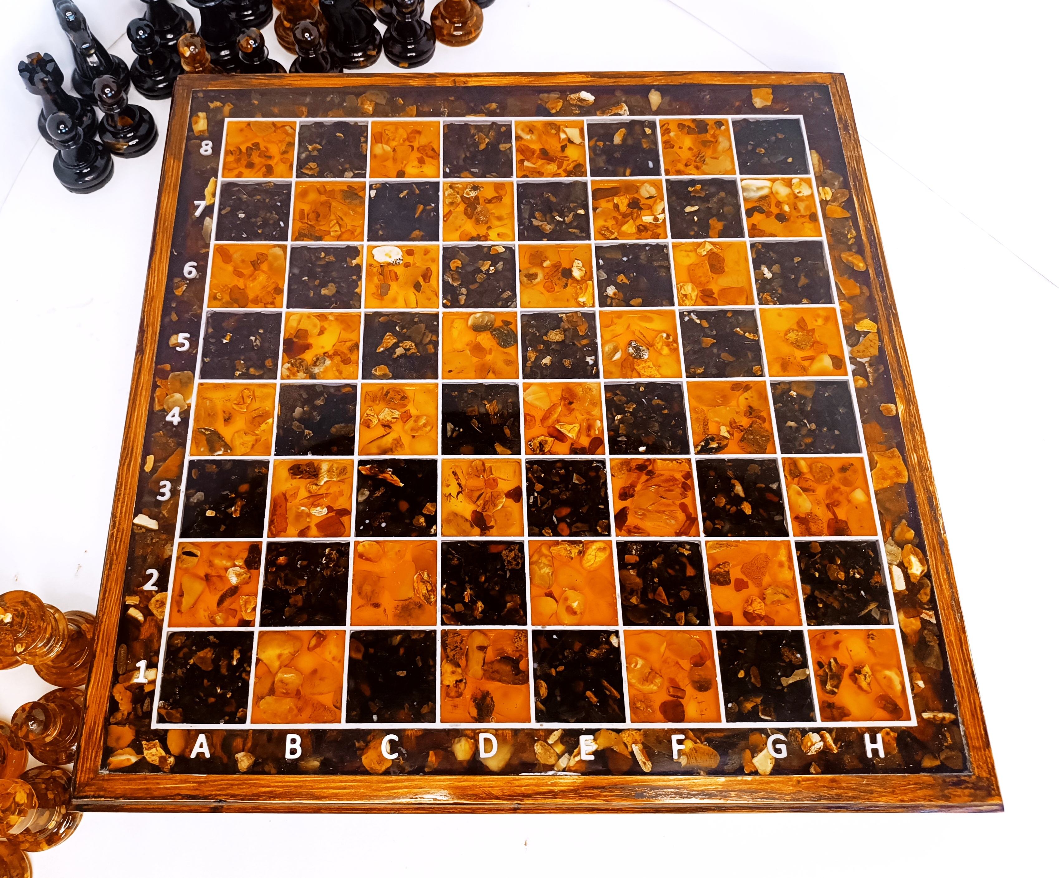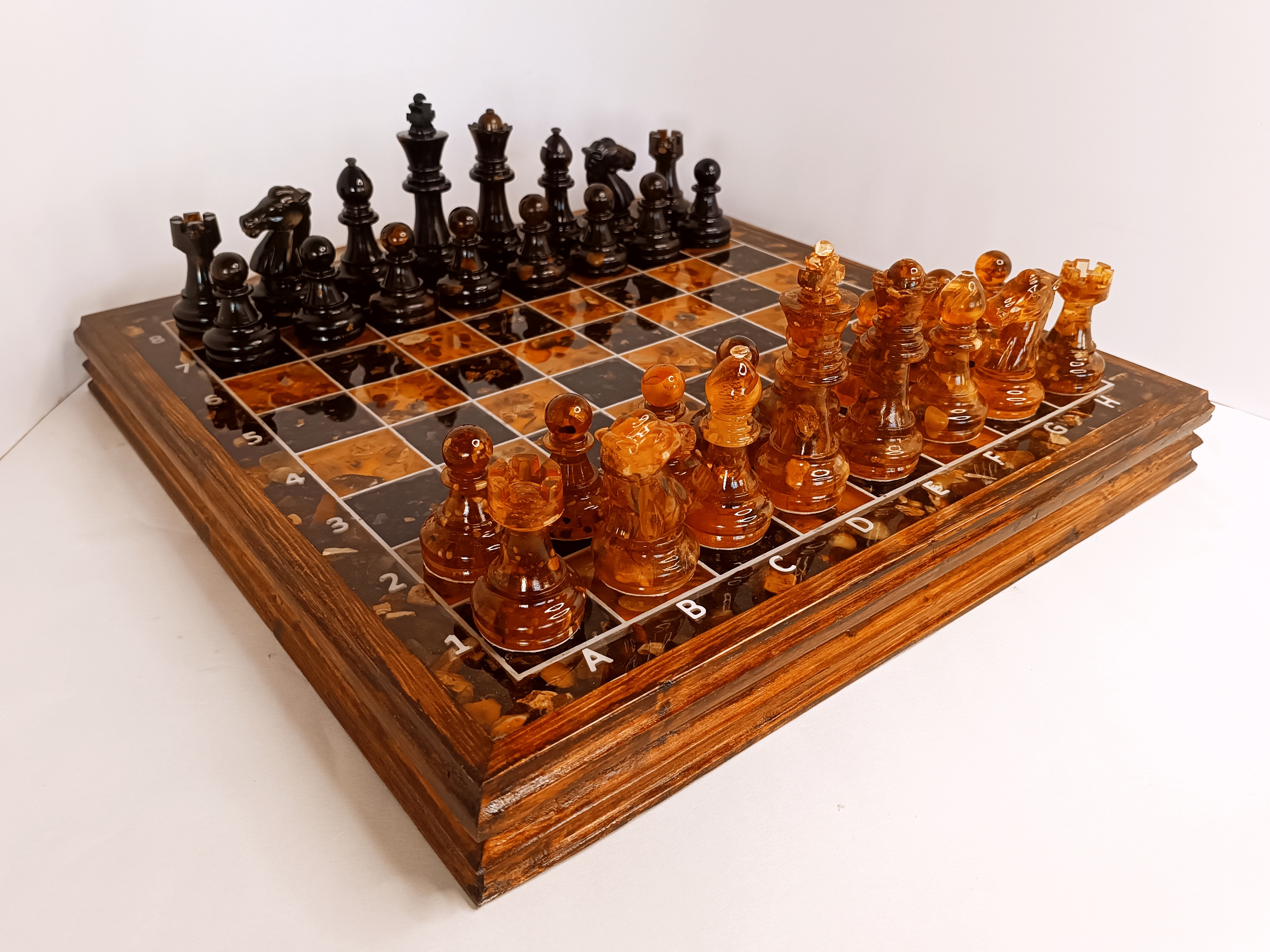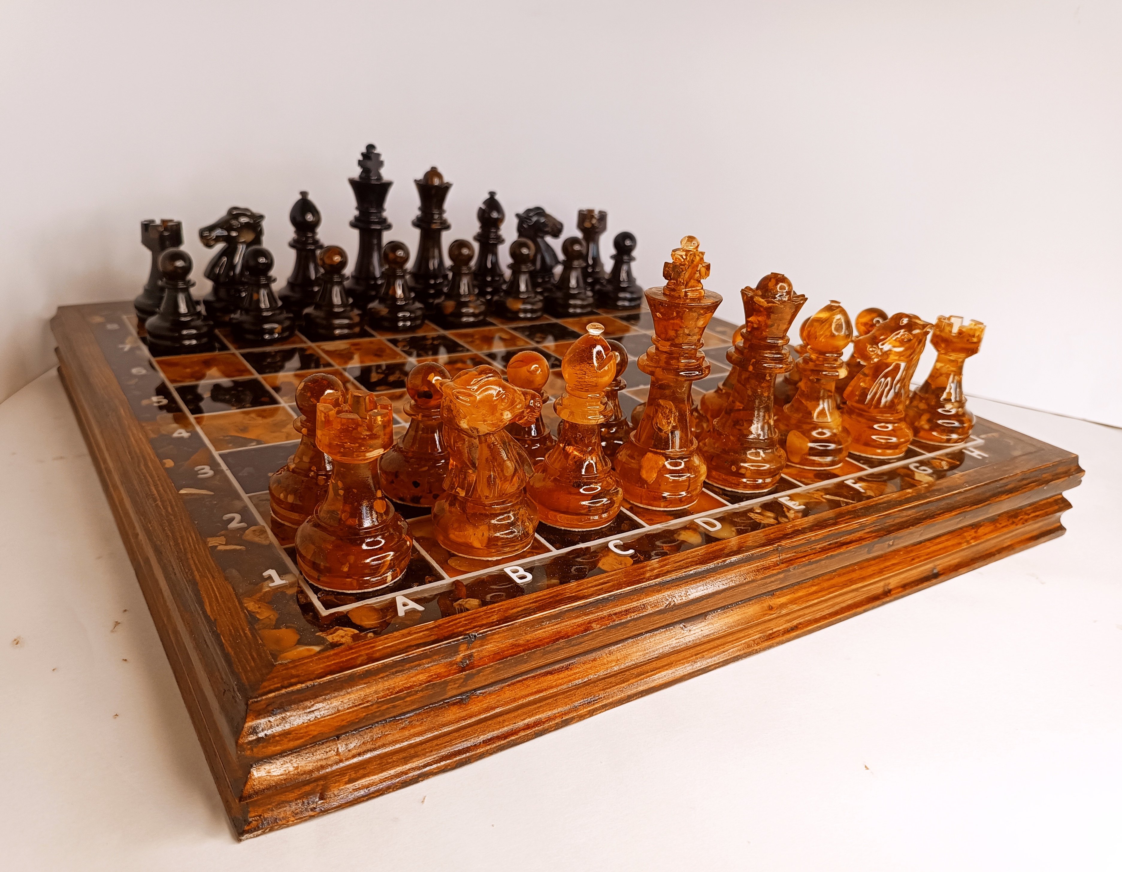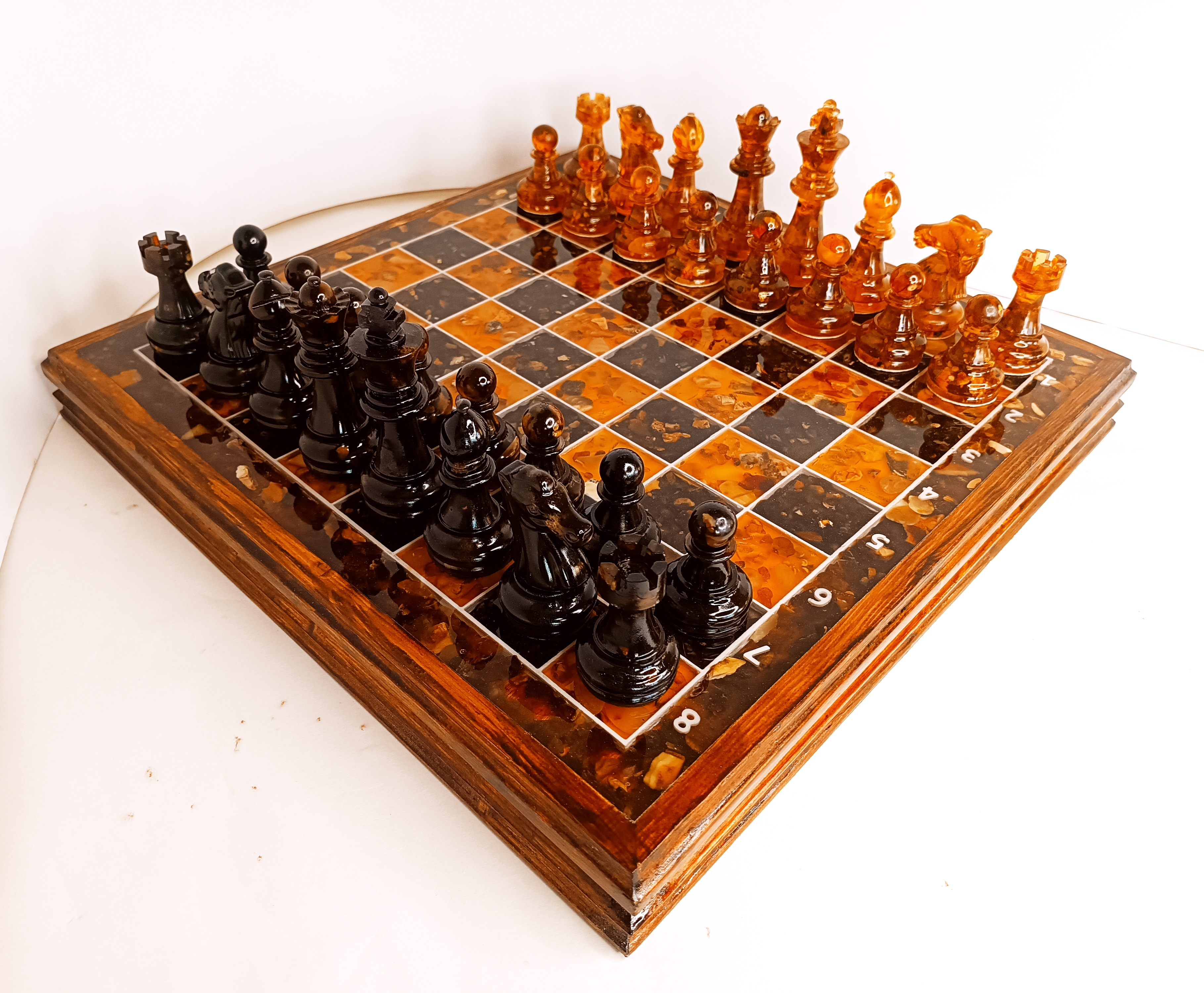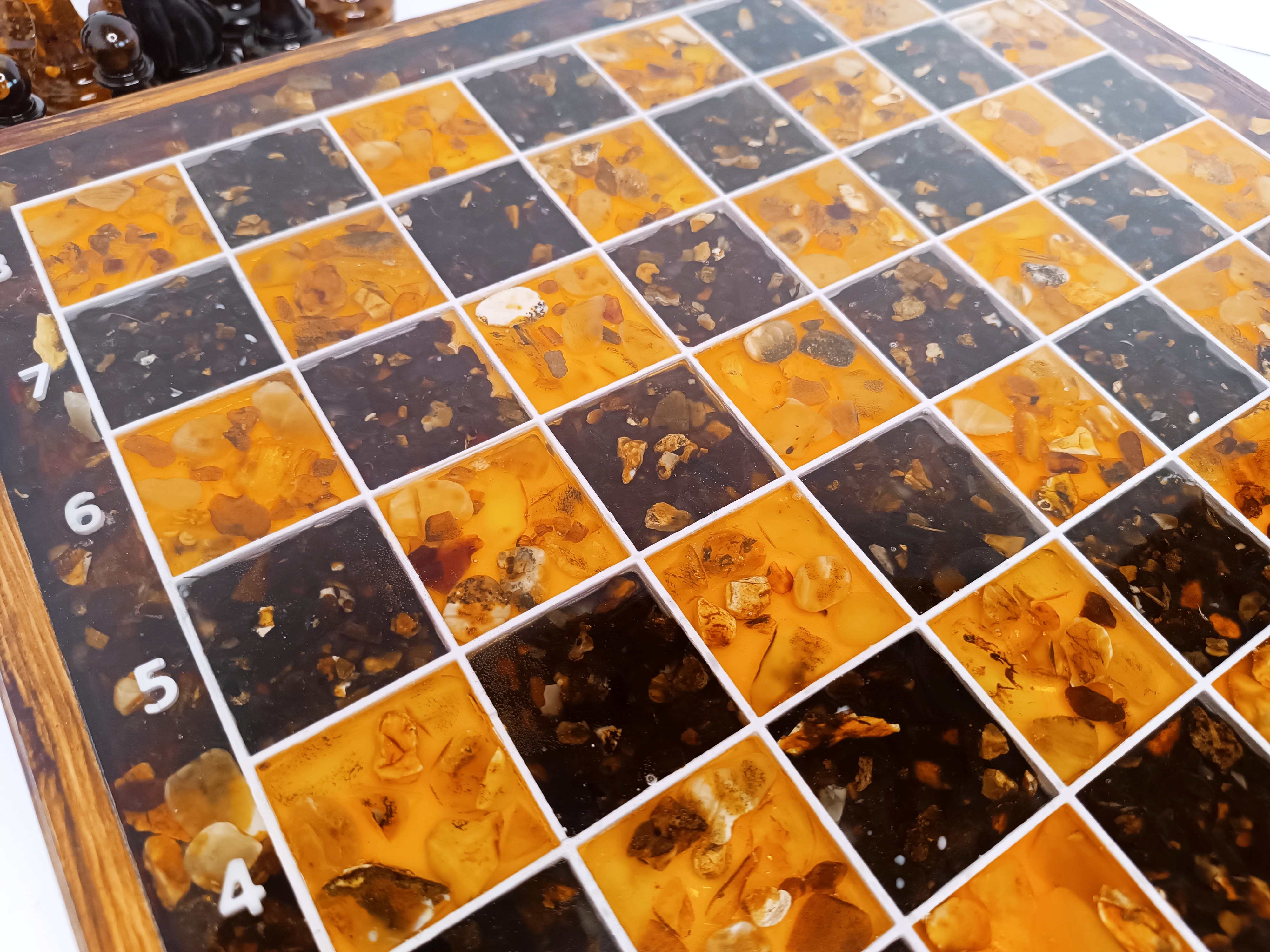 - шахматная доска из янтаря, дерева и смолы, размер 410х410х45 мм - 19500 руб